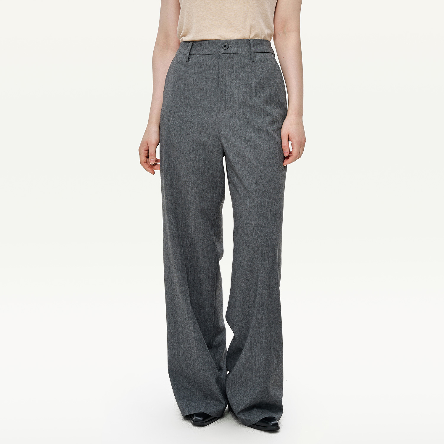 осенние прямые брюки sameuoo free-range culture серого цвета с объемной i-образной складкой нейтрального фасона, которые не мнются и за которыми легко ухаживать.