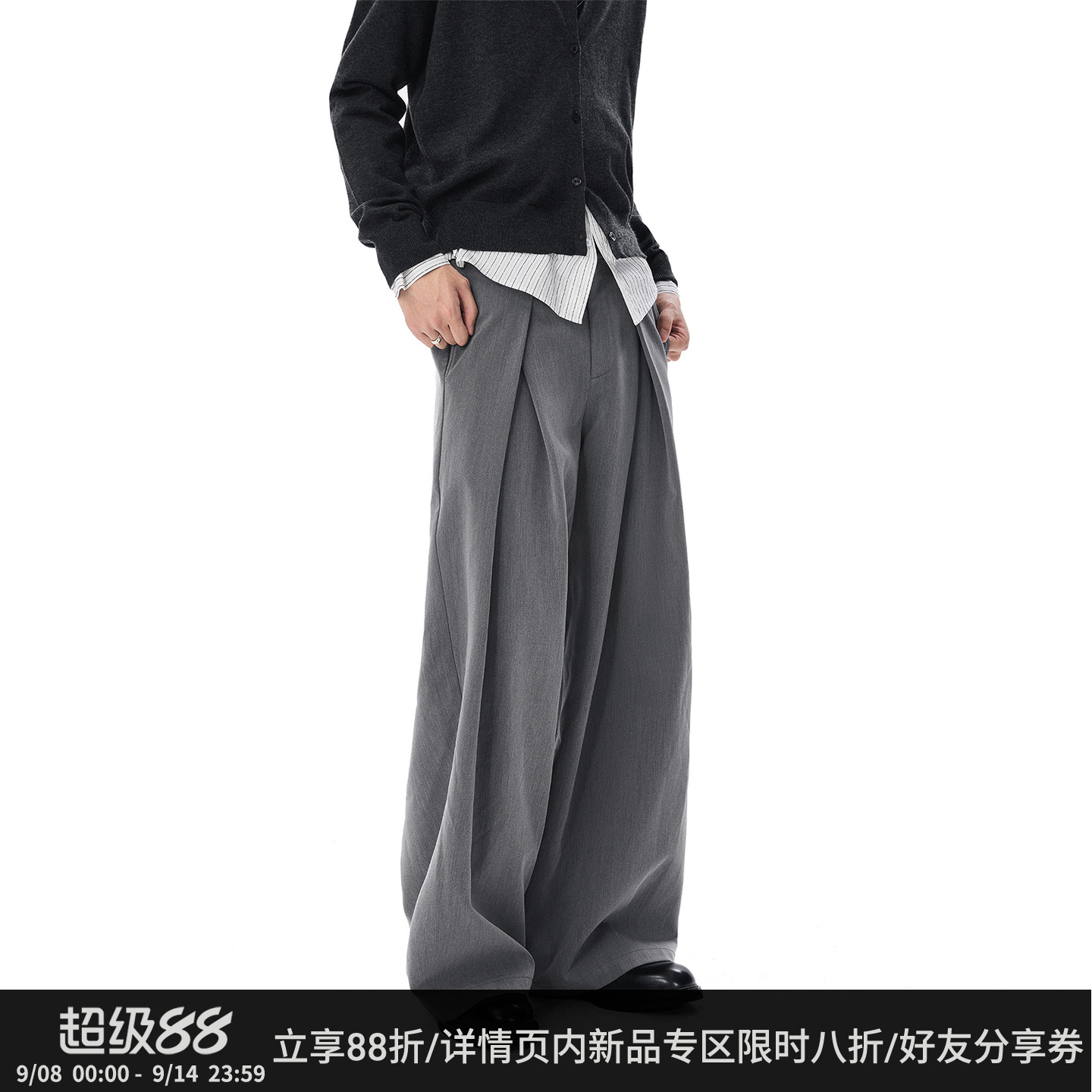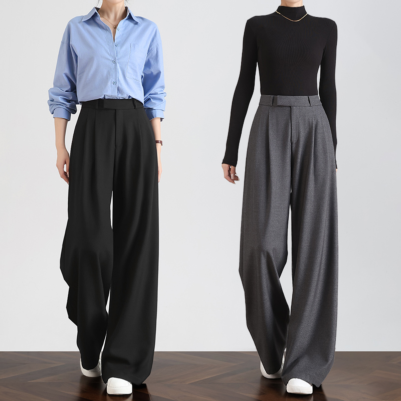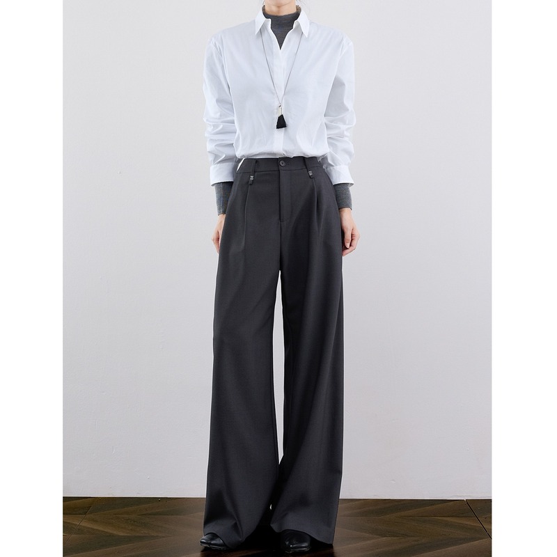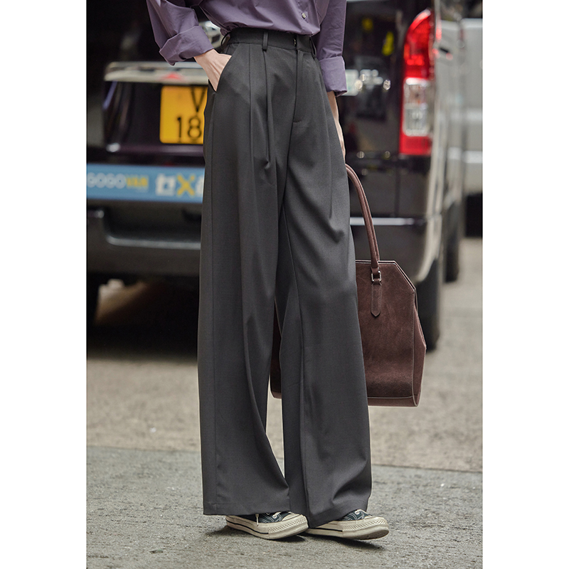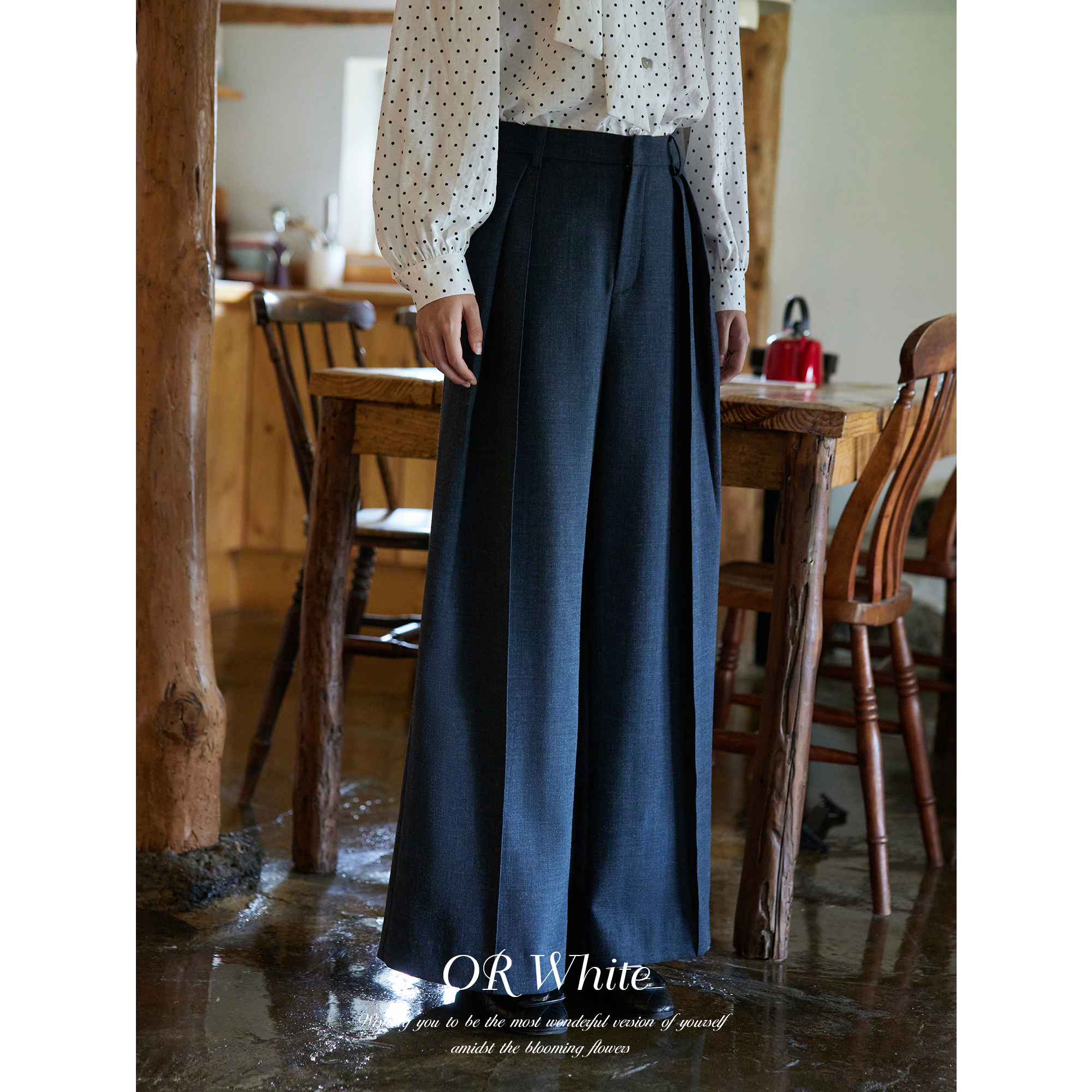 Купить ORWhite 2025 осенние драповые темно-серые широкие брюки повседневные брюки женские тонкие костюмные брюки трапециевидной формы с высокой талией на таобао