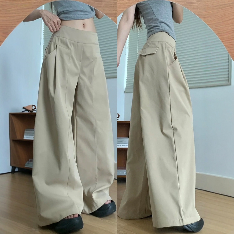 Купить Япония, JGYPDM, новинка 2025 года, костюмные брюки цвета хаки, женские повседневные драповые брюки с высокой талией, свободные и тонкие широкие брюки на таобао