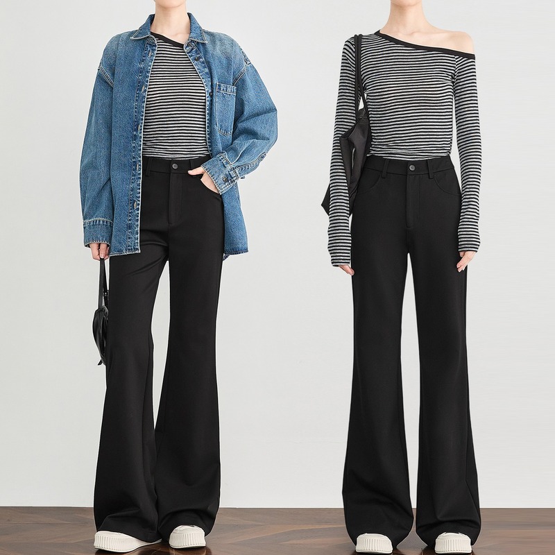 Купить Черные тонкие костюмные брюки с высокой талией, женские осенне-зимние брюки в новом стиле с микро-притачкой, брюки-подковы на талии, узкие прямые брюки для уборки на таобао