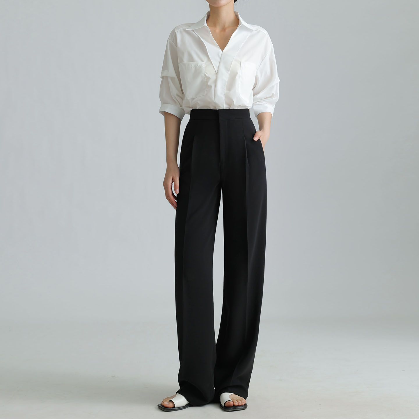 Купить Одежда для работы, начиная с этой модели, черные брюки прямого кроя, тонкие и драпирующиеся, подчеркивают темперамент на таобао