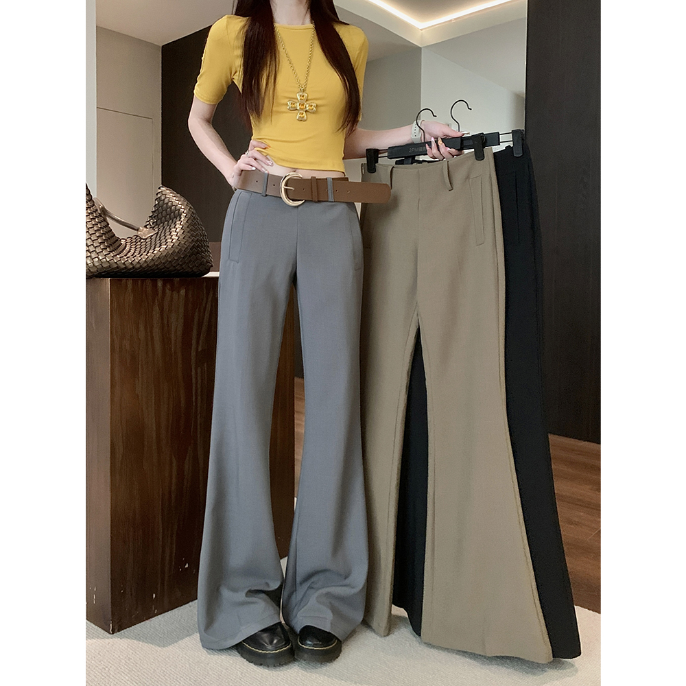 Серый костюм, повседневные брюки, женские осенние брюки в стиле ретро с низкой талией для похудения, брюки с микро-притачкой, драпированные расклешенные брюки-подковы