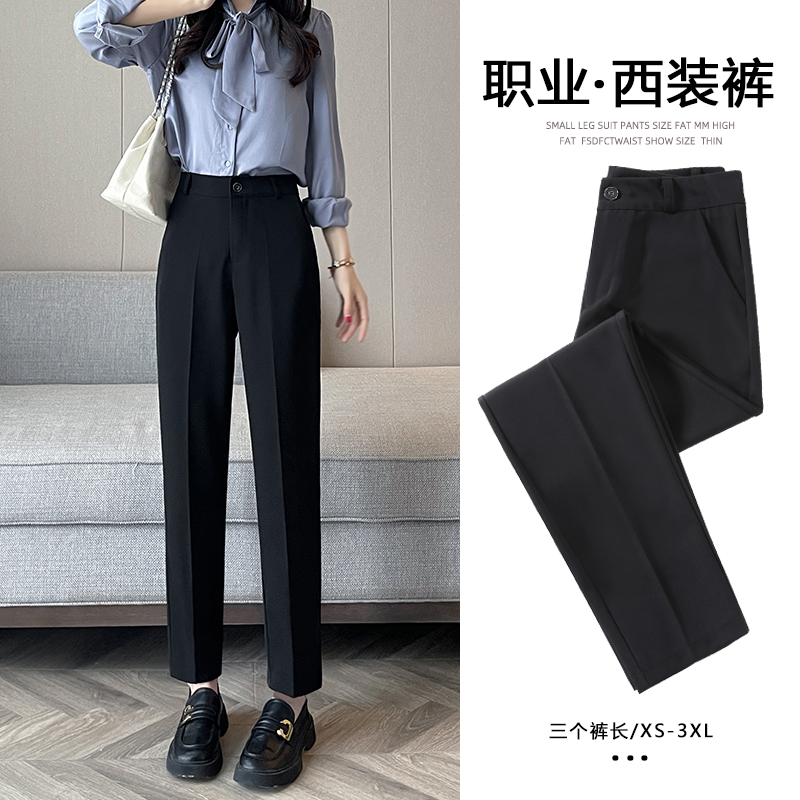 Купить Черные костюмные брюки, женская профессиональная официальная одежда, летние тонкие брюки 2025 года, новые костюмные брюки с девятиточечной трубкой для сигарет, повседневные прямые брюки на таобао