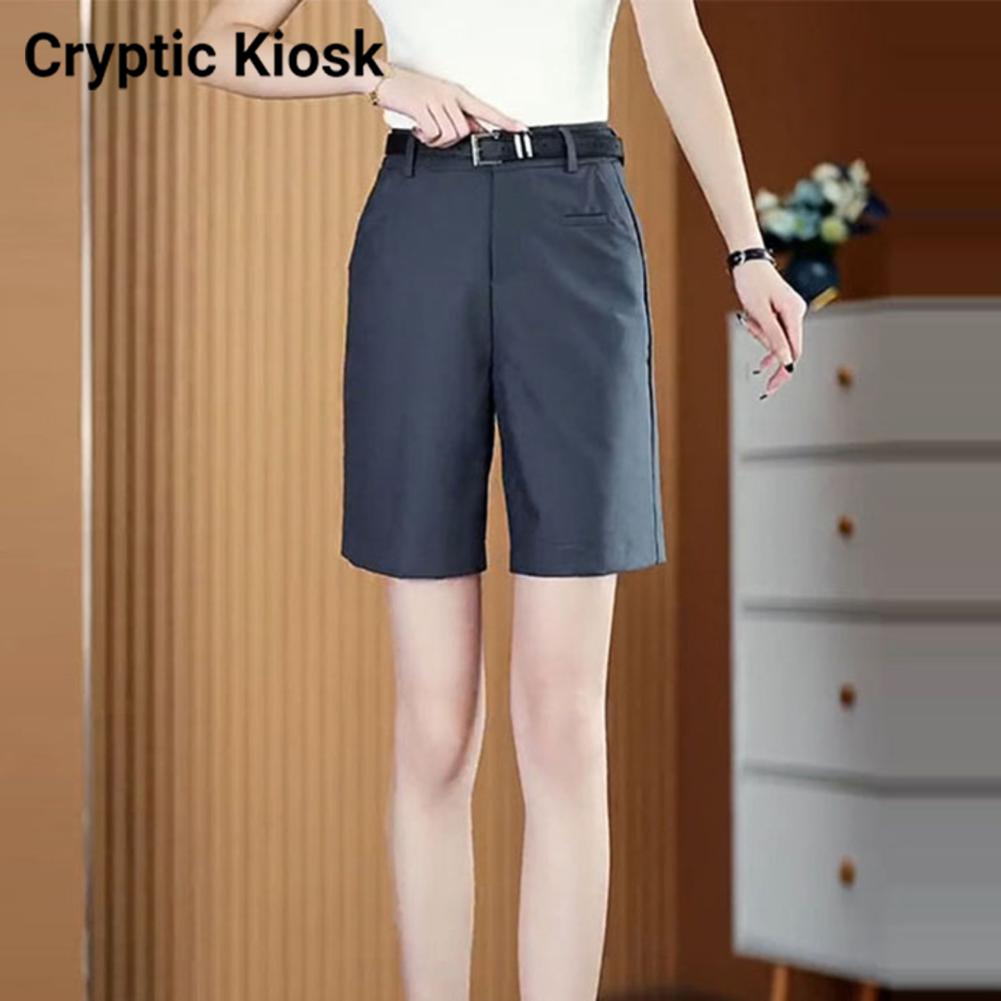 Купить Тонкий серый костюм-шорты Cryptic Kiosk, женские летние 2025 новые женские брюки трапециевидной формы с высокой талией и широкими штанинами на таобао