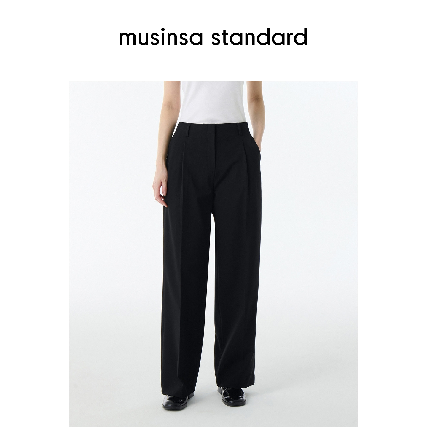 musinsa standard25 осенняя женская широкая версия простых повседневных брюк с завышенной талией, прямых однотонных плиссированных брюк