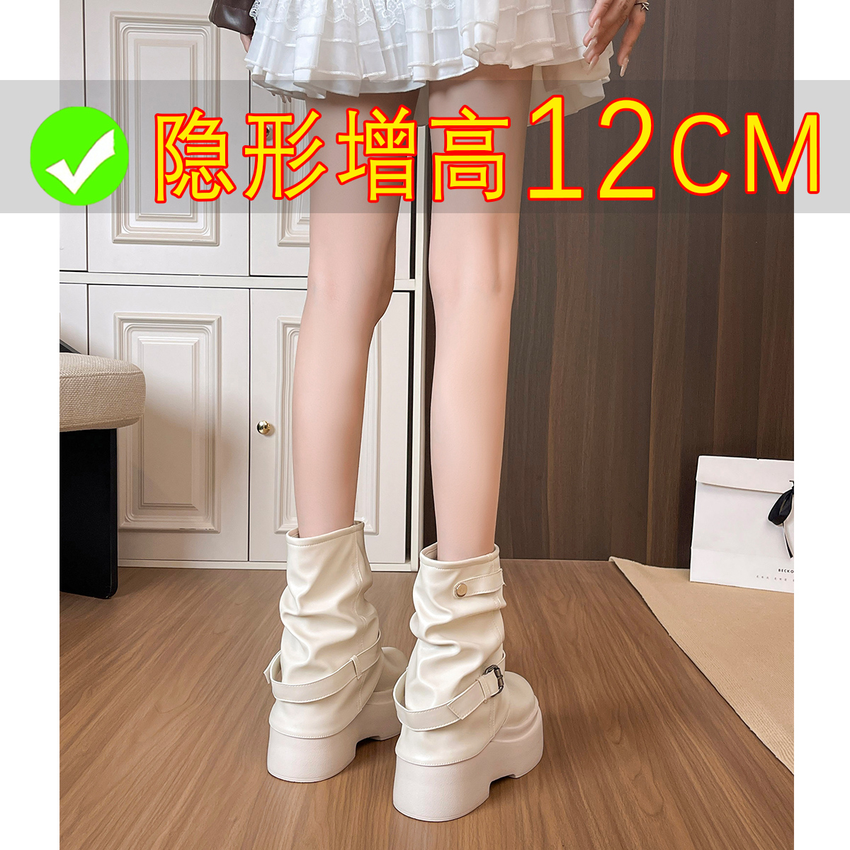Купить Ботинки Dog brother с длинными штанинами, женская обувь среднего размера, увеличивающая рост, короткие ботинки на толстой подошве, ботинки Martin, комплект обуви cos, увеличивающий рост, новинка на таобао