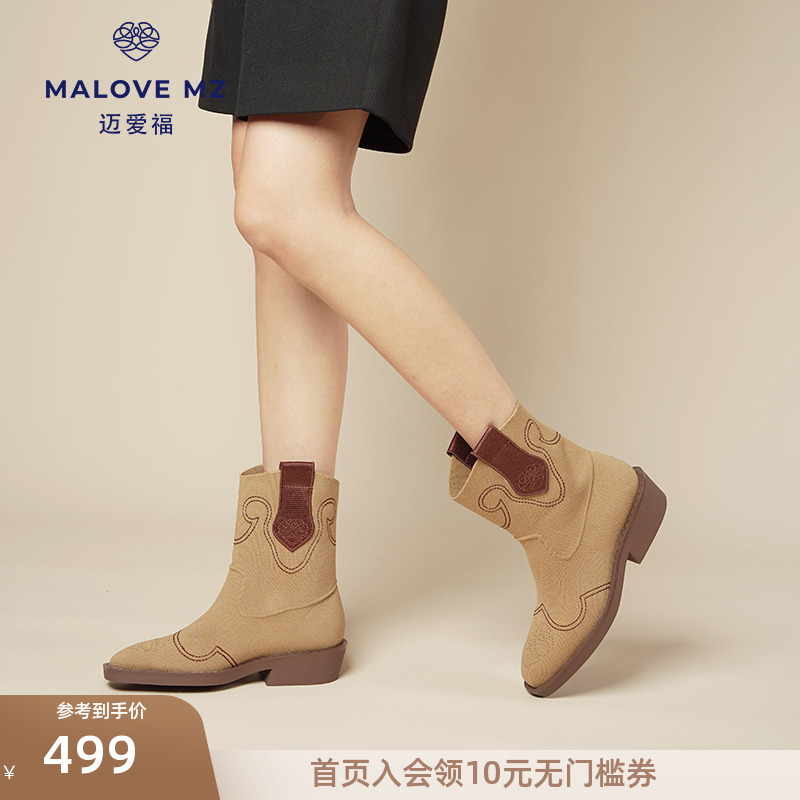 Купить Первая серия женских полусапожек на плоской подошве, новинка 2023 года, осенне-зимние ковбойские сапоги в западном стиле, сапоги с ворсом, сапоги с круглым носком, взрывные сапоги средней длины. на таобао
