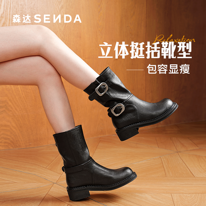 Купить Осенние и зимние бутсы Senda knight boots 2025, представленные в торговых центрах в едином стиле, - это тонкие сапоги на толстом каблуке с большим каблуком-трубочкой, модные ботинки на толстой подошве, увеличивающие рост на таобао