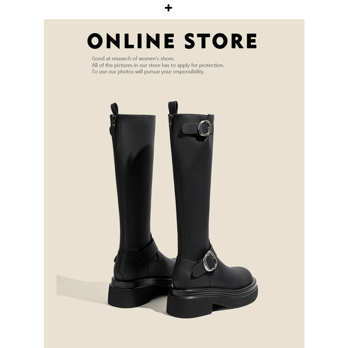 Ботинки менеджера магазина Lao Meow's, женские ботинки на толстой подошве увеличенного размера, новинка 2025 года, длинные кожаные сапоги, маленькие брюки, рыцарские сапоги-тюбики