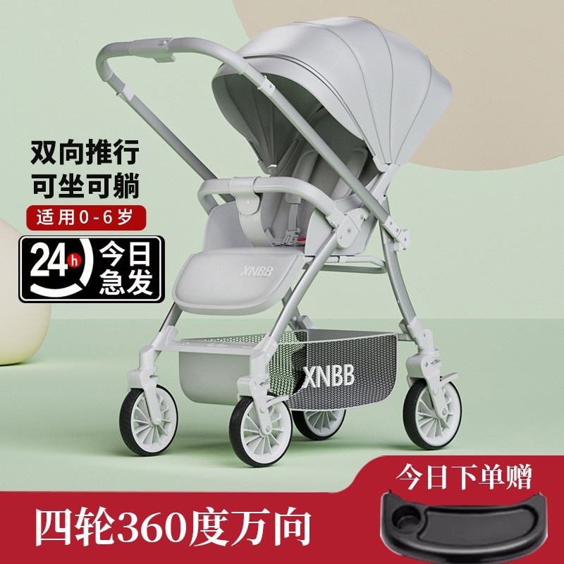 Купить Двухсторонняя детская коляска с высокой посадкой, которая может сидеть и лежать в возрасте от 0 до 3 лет, легкая четырехколесная универсальная детская коляска, складывающаяся на одной кнопке. на таобао