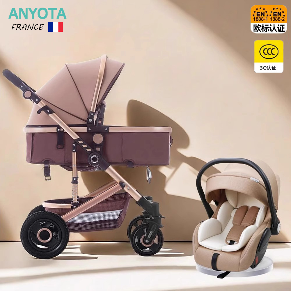 Купить Импортная детская коляска ANYONA может сидеть и лежать, высокая ландшафтная складная двусторонняя корзина "три в одном", коляска для новорожденных на таобао