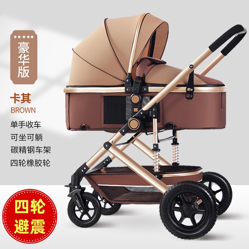 Купить Детская коляска, высокая посадка, легкая, сидячая, откидывающаяся, складывающаяся, амортизатор, двусторонняя детская коляска, коляска для новорожденных, три в одном на таобао