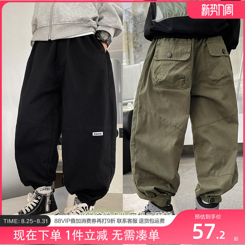 Купить Брюки для мальчиков весенне-осенних моделей, новинка 2025 года, детские осенние комбинезоны, осенние широкие брюки для больших детей, свободные и красивые трендовые на таобао