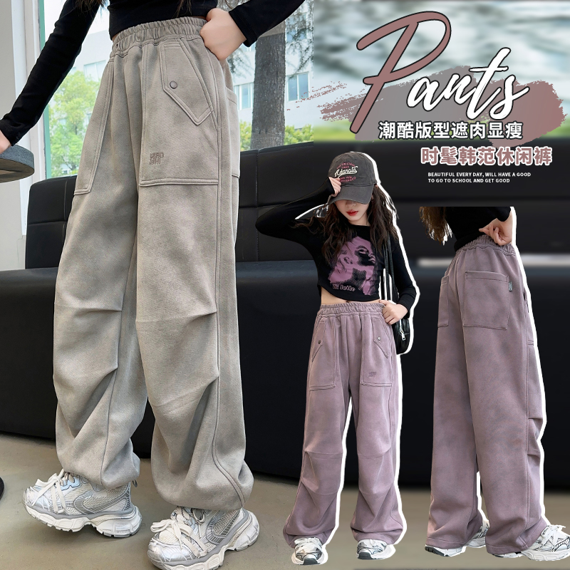 Штаны для девочек, весенне-осенняя одежда, новинка 2025 года, осенняя детская одежда в корейском стиле для девочек, большие детские модные крутые повседневные широкие брюки