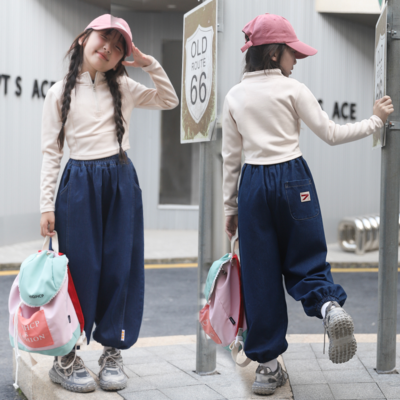 Джинсовые широкие брюки для девочек, весенние и осенние модели, детские осенние свободные брюки, прямые повседневные брюки для больших детей, корейская версия модного крутого