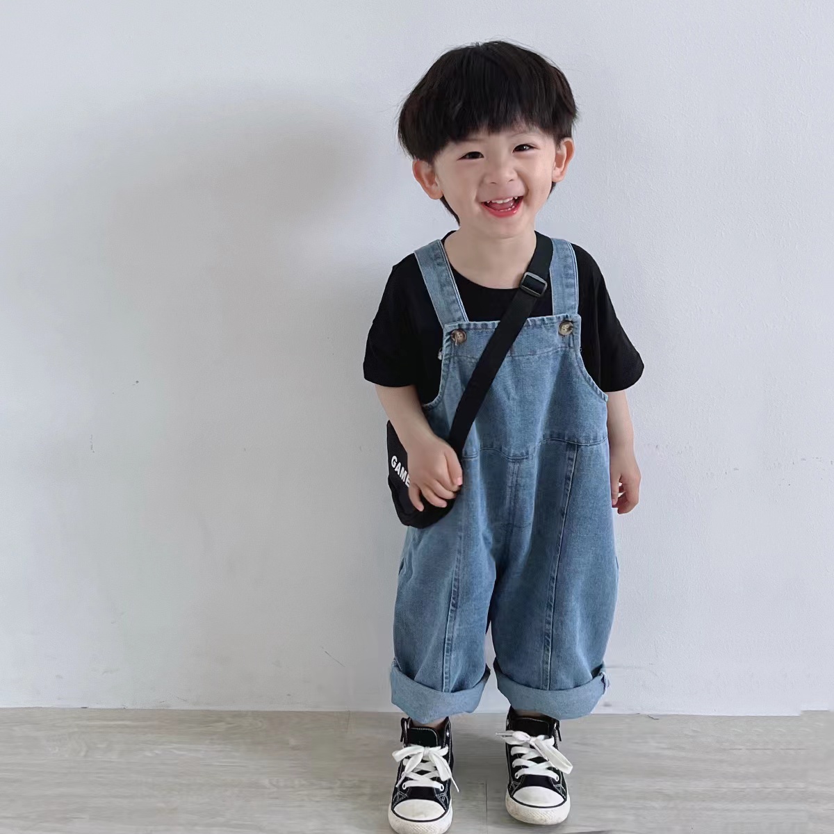 Купить 2025 летняя новая корейская детская одежда для мальчиков и девочек, повседневные брюки в корейском стиле, детские джинсовые комбинезоны в западном стиле, тренд на таобао