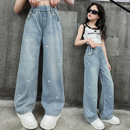 Купить Джинсы для девочек, свободные широкие детские женские брюки, новые брюки для девочек 2025 года, супер красивые брюки для больших детей для девочек на таобао