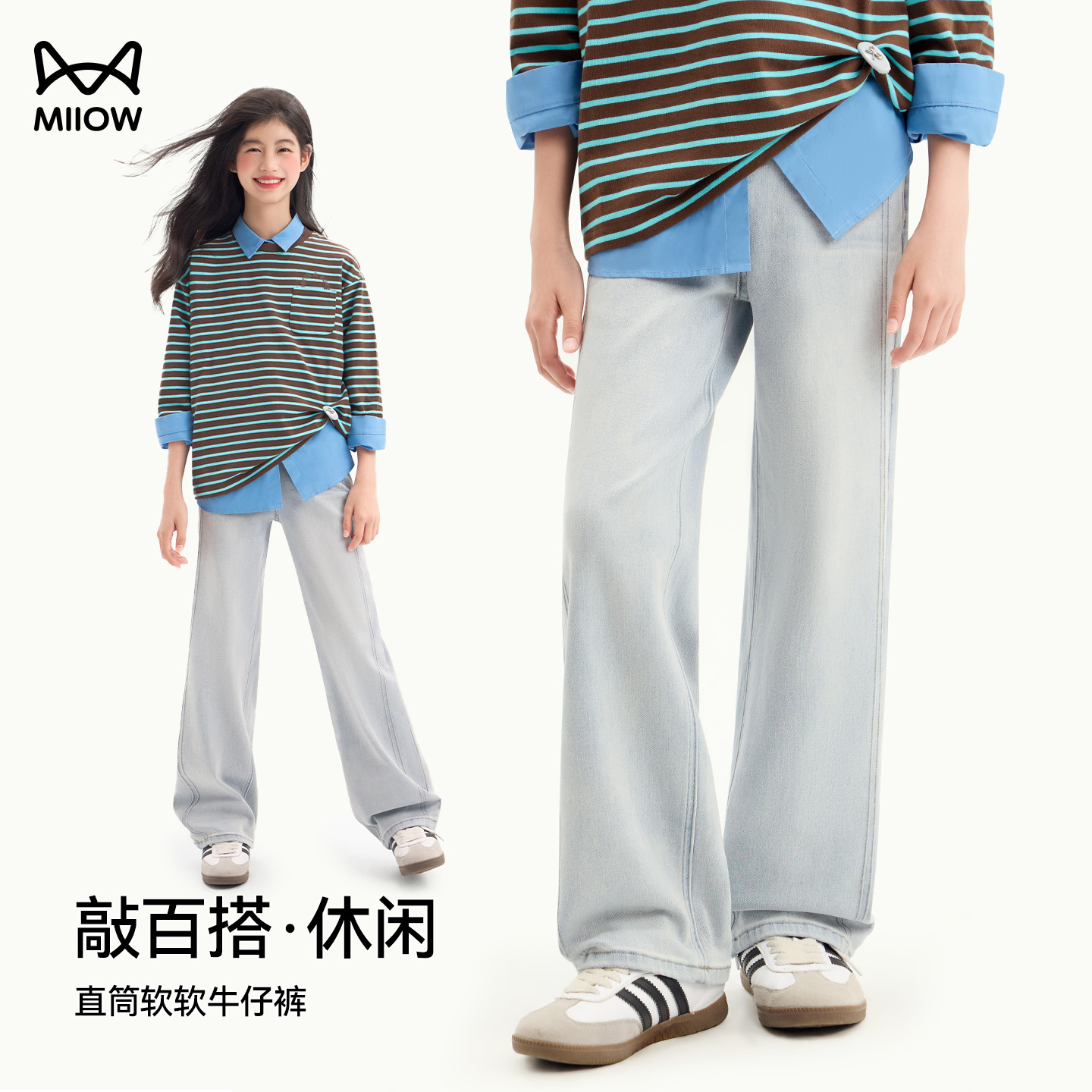 Купить Джинсы для девочек Cat people весенне-осенних моделей, новинка 2025 года, большие детские широкие брюки, повседневные брюки для учащихся младших классов средней школы, осенняя одежда на таобао