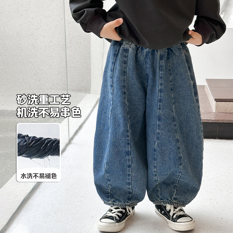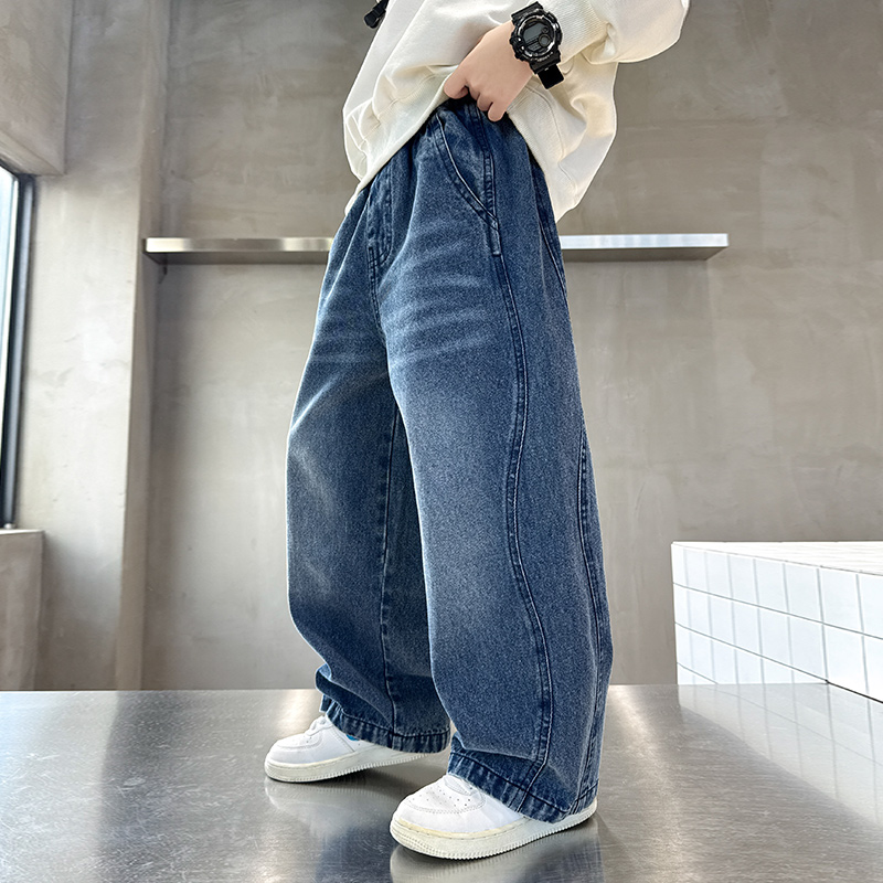 Купить Детская одежда, джинсы для мальчиков, модная осень 2025, новые повседневные брюки для мальчиков, корейский стиль, для младших классов средней школы, западный стиль, широкие брюки на таобао
