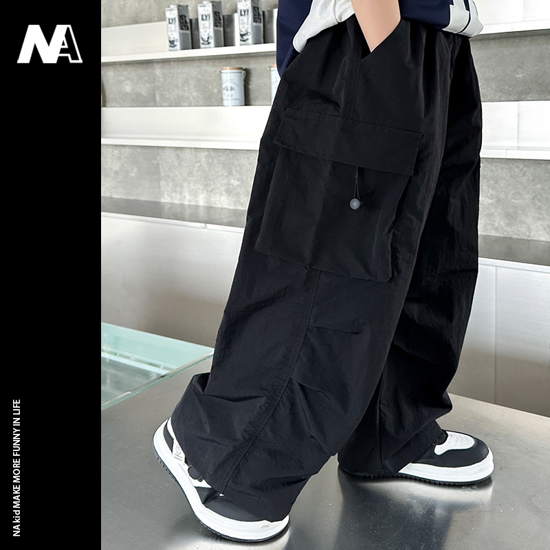 Брюки для мальчиков весенне-осенних моделей, новинка 2025 года, детские осенние комбинезоны, осенние широкие брюки для больших детей, свободные и красивые трендовые