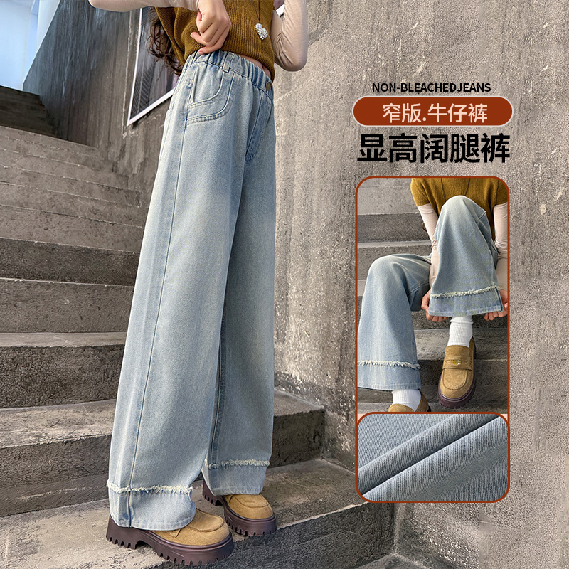 Купить Джинсы с широкими штанинами для девочек, весенне-осенние модели, новинка 2025 года, детские брюки с прямыми штанинами, осенние брюки для девочек, большие детские штаны для учащихся младших классов средней школы на таобао