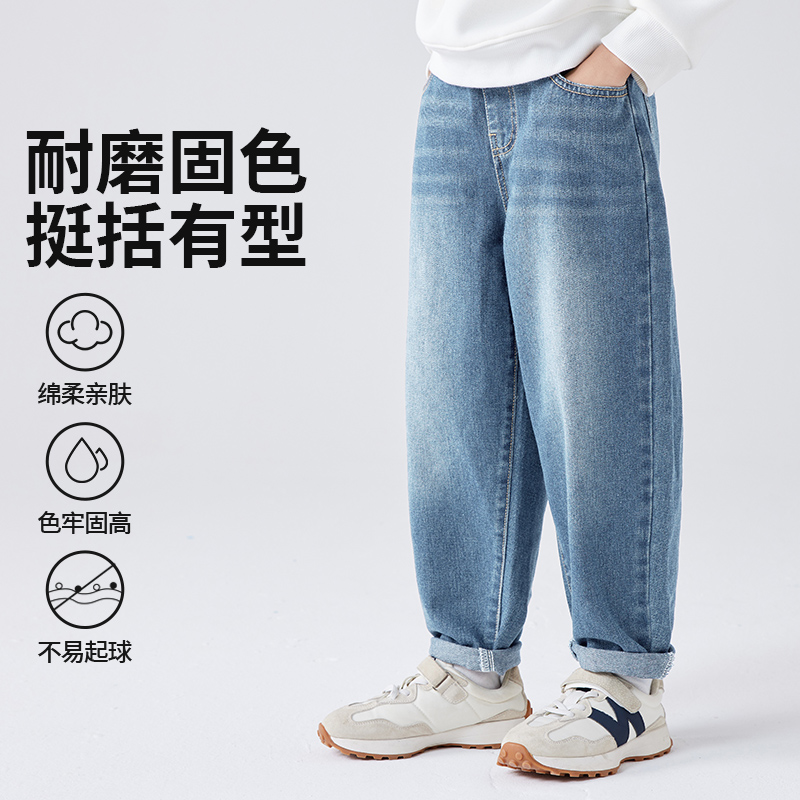 Джинсы для мальчиков, весенне-осенние брюки с прямыми штанинами, новинка 2025 года, свободные широкие брюки для детей среднего возраста, детские осенние брюки в стиле Ruffian beautiful