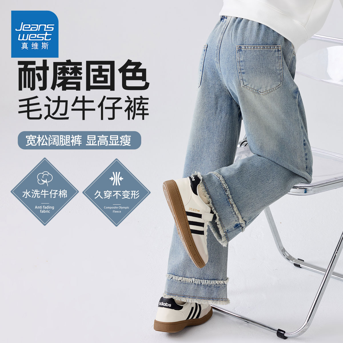 Купить Детская одежда Zhenvis, детские джинсы, весенне-осенние брюки для девочек, новинка 2025 года, тонкие брюки, спортивные широкие брюки на таобао