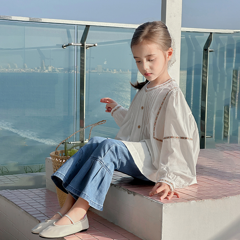 Джинсы для девочек, весенние и осенние брюки-клеш, маленькие девочки, осенние модели, детские осенние брюки-клеш, детская осенняя одежда, женское сокровище