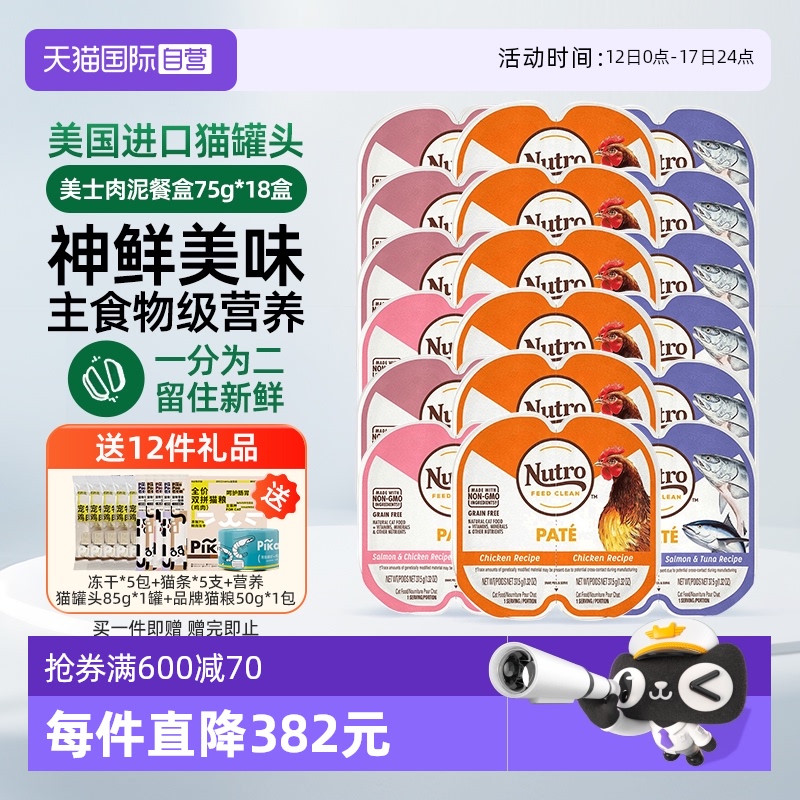 Купить [Автономный] Nutro Meishi состоит из двух ланч-боксов, 18 банок импортного консервированного корма для кошек, 75-граммовых банок с основным кормом, влажного корма для кошек. на таобао