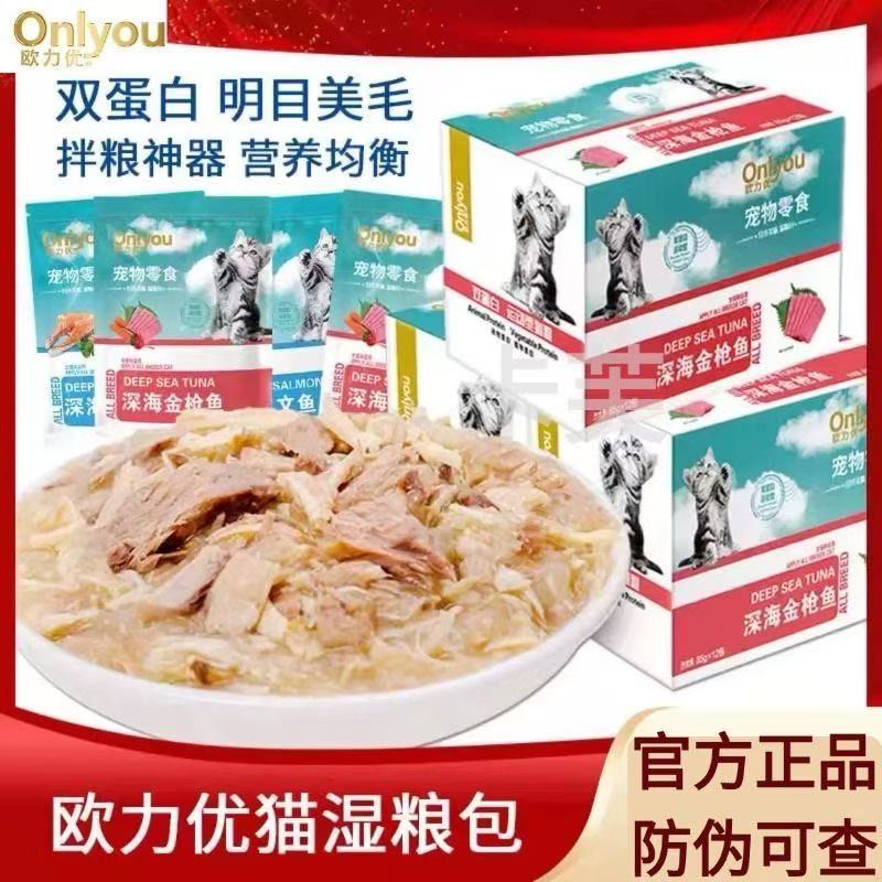 Купить Влажный корм Ouliyou Cat с консервированным свежим мясом в упаковке 85 г * 12 пакетиков со вкусом лосося и тунца для котят на таобао