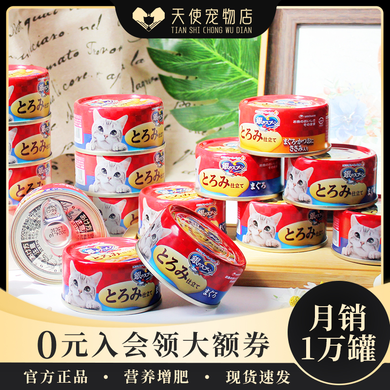 Купить Япония Цзяле Цзы импортировала серебряную ложку консервированных кошачьих закусок для кошек, питание для откорма взрослых кошек, влажный корм для кошек, 24 банки консервированного основного корма на таобао