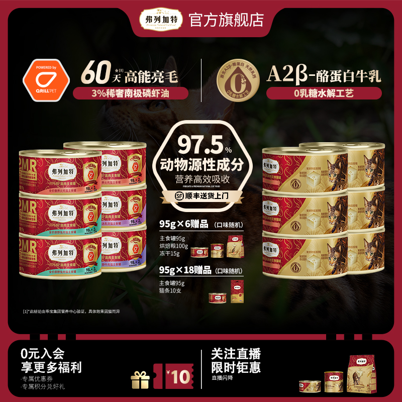 Купить Консервы "Фридгарт", 0 Лактоза, 0 Прессованное молоко, Свежее мясо, молочные консервы, Влажный корм, 95 г * 6 консервов, основной корм для кошек. на таобао