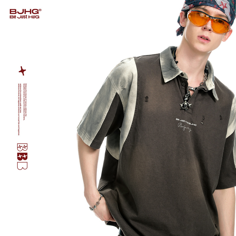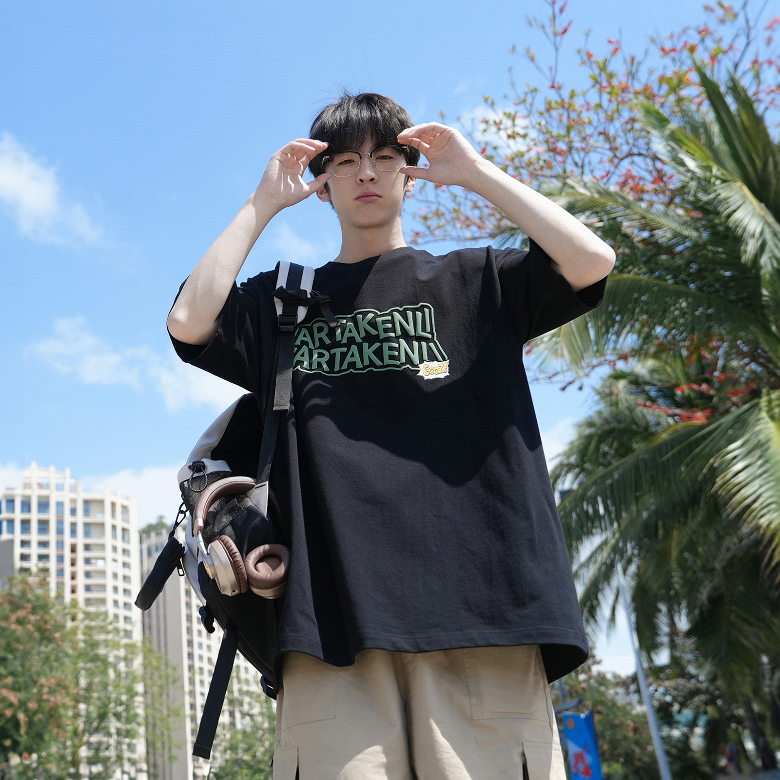 WHOOSIS (я не знаю его названия) футболка с короткими рукавами и отпечатками пальцев, плотная хлопчатобумажная блузка, национальная модная мужская пара на улице.