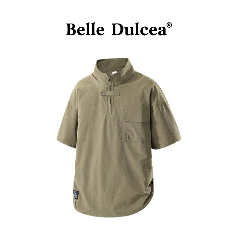 Belle Dulcea2025 летняя модная американская ретро-футболка из ледяного шелка с коротким рукавом, быстросохнущая мужская летняя футболка на молнии