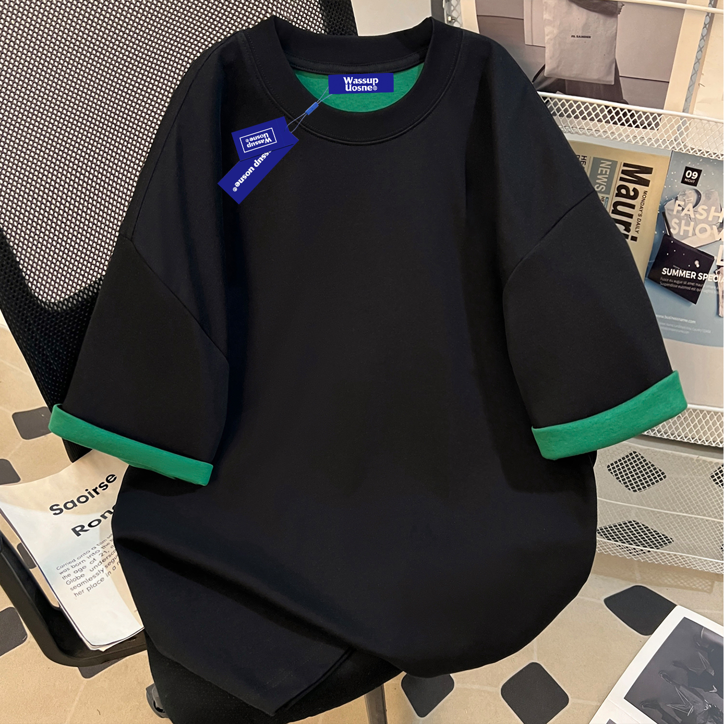 Купить WASSUP тяжелая простая двухцветная футболка с короткими рукавами, мужская летняя новинка 2025 года, свободный топ для пары оверсайз на таобао