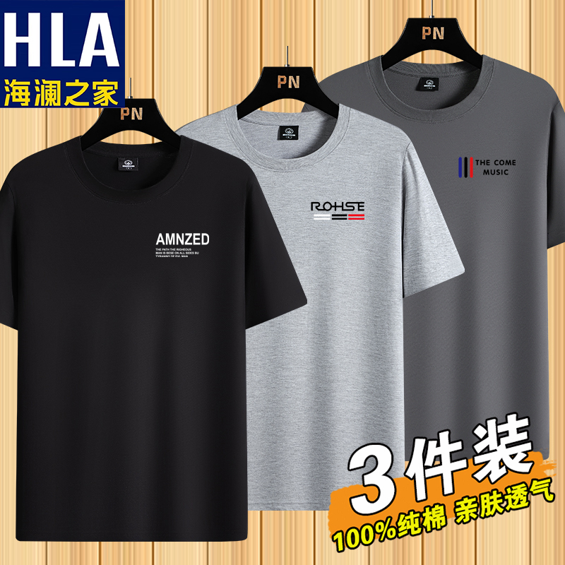 Купить Мужская футболка с короткими рукавами HLA/Hailan House, новинка лета 2025, хлопковая повседневная футболка с круглым вырезом, универсальный мужской топ на таобао