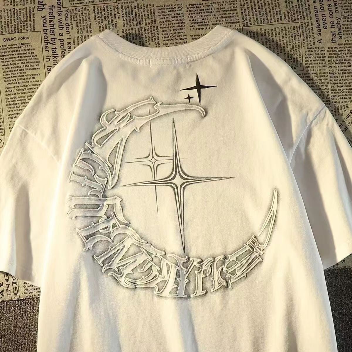 Футболка с короткими рукавами американского модного бренда из 100% хлопка с принтом луны и звезд, мужская летняя футболка в стиле хип-хоп в европейском и американском стиле high street