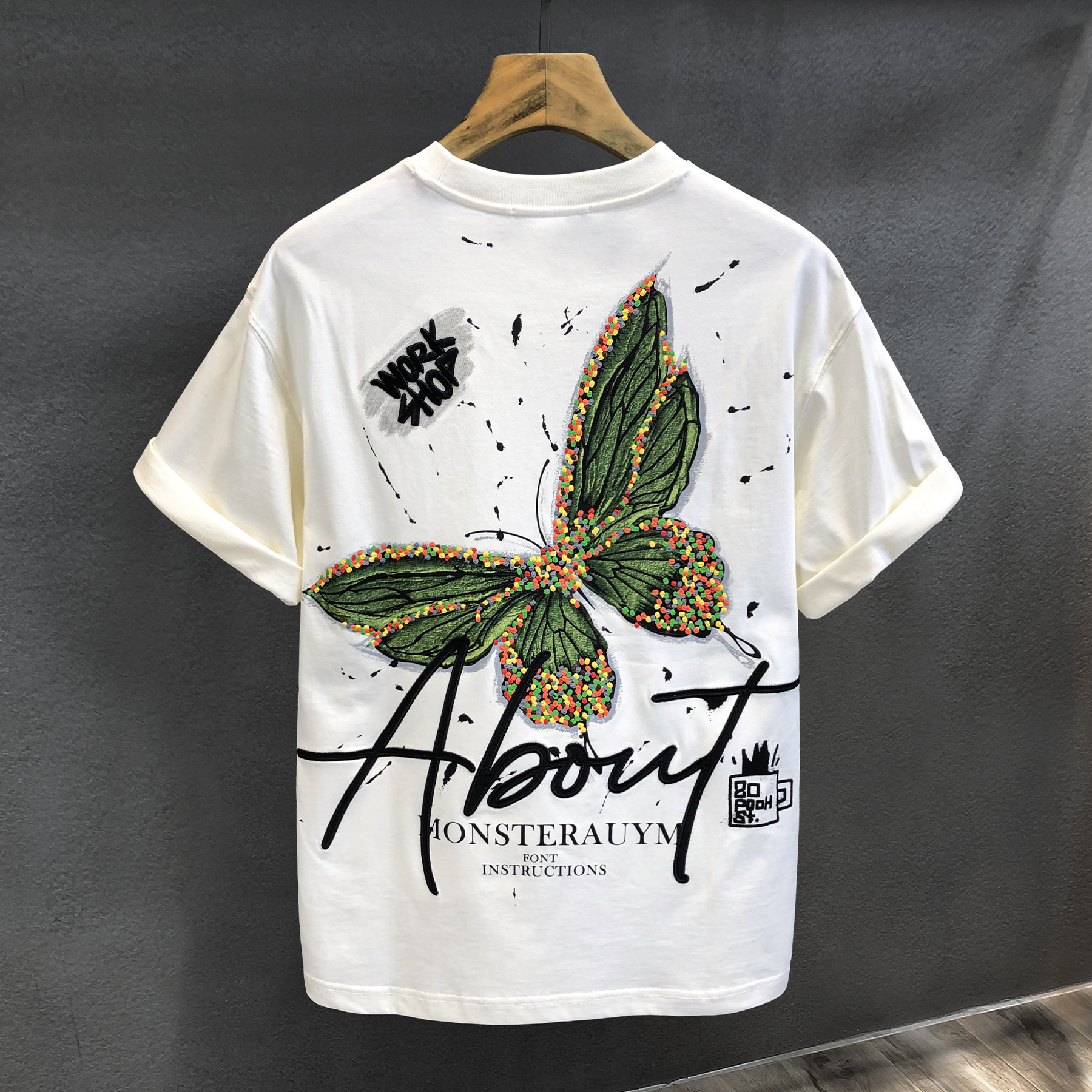Купить Пестрая цветная бабочка противостоит высококлассному ощущению чистого хлопка, плотная футболка с короткими рукавами, мужская новая свободная футболка с короткими рукавами, мужская на таобао
