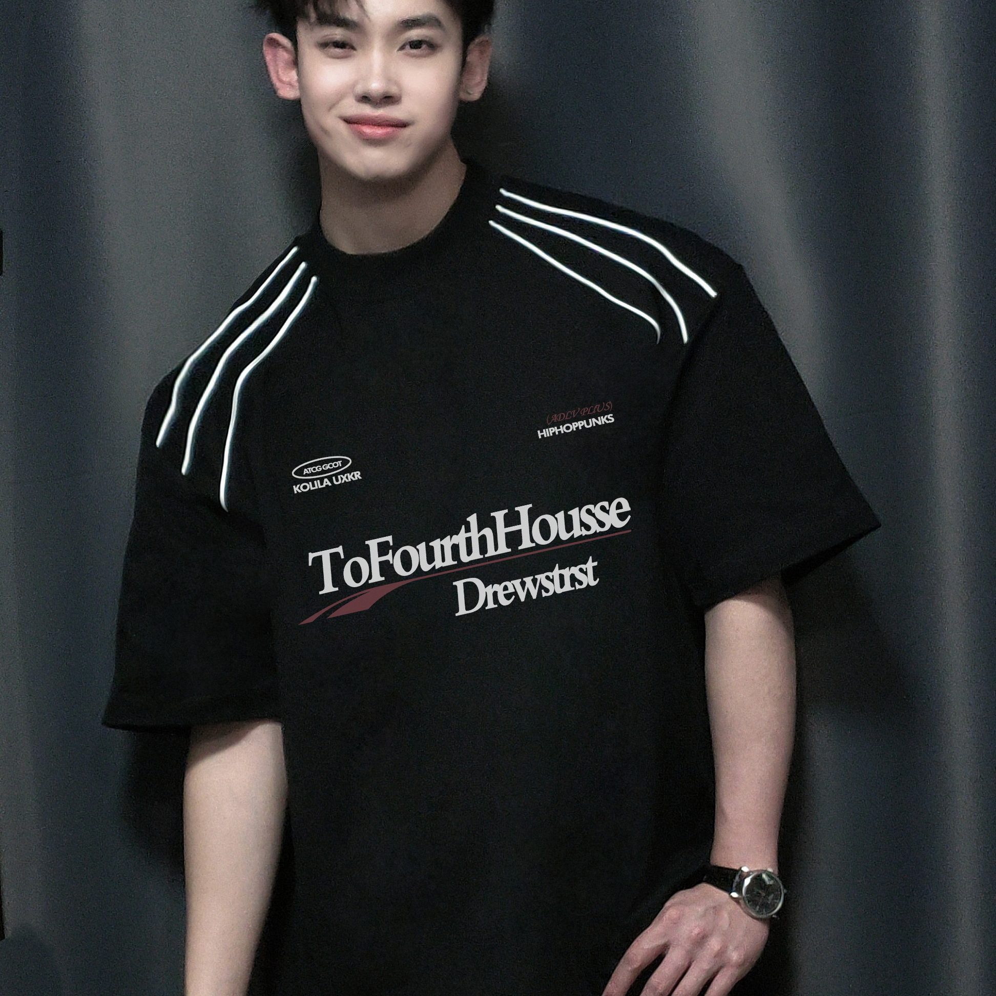 Купить Модные люди ~ Мужская летняя футболка из плотного хлопка с короткими рукавами из американского хай-стрит, универсальная футболка оверсайз, модный топ с короткими рукавами на таобао