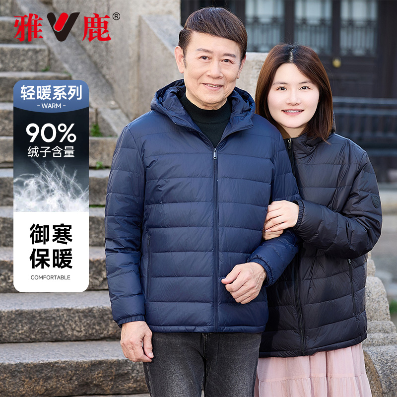 Купить Пара мужчин и женщин с одинаковым стилем на утином пуху, легкая куртка-пуховик на 90% из утиного пуха, куртка с капюшоном, осень-зима 2025, новый легкий короткий стиль на таобао
