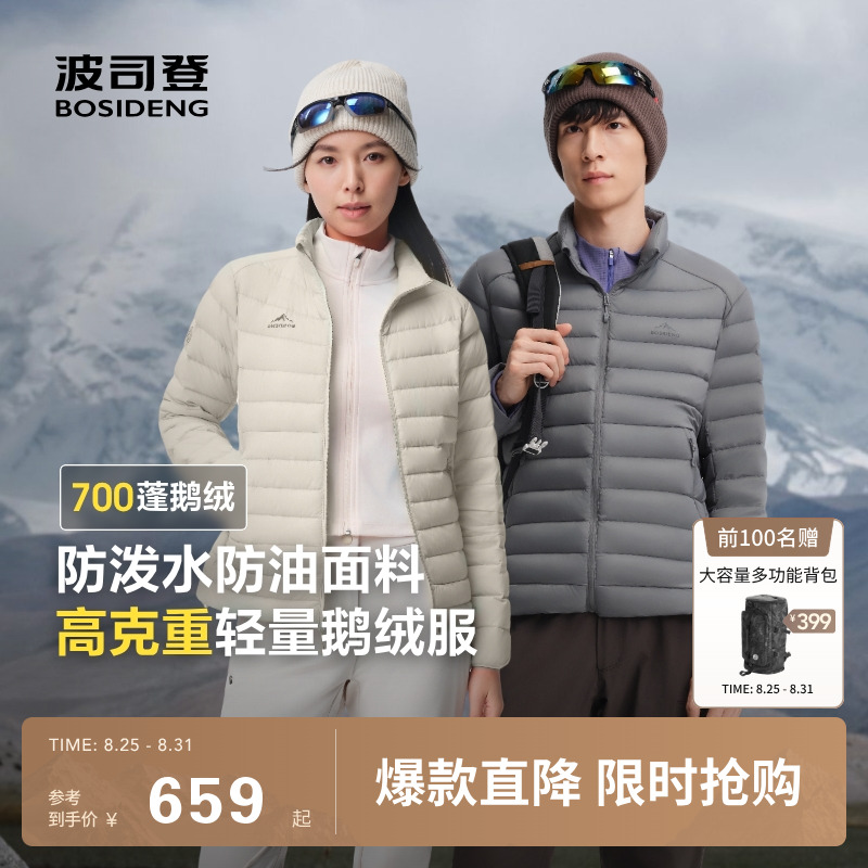 Купить 90 г. гусиный пух, Bosideng 25 г., осенний новый стиль, пуховик с воротником-стойкой в виде ребер, мужская и женская короткая ветрозащитная куртка на подкладке на таобао