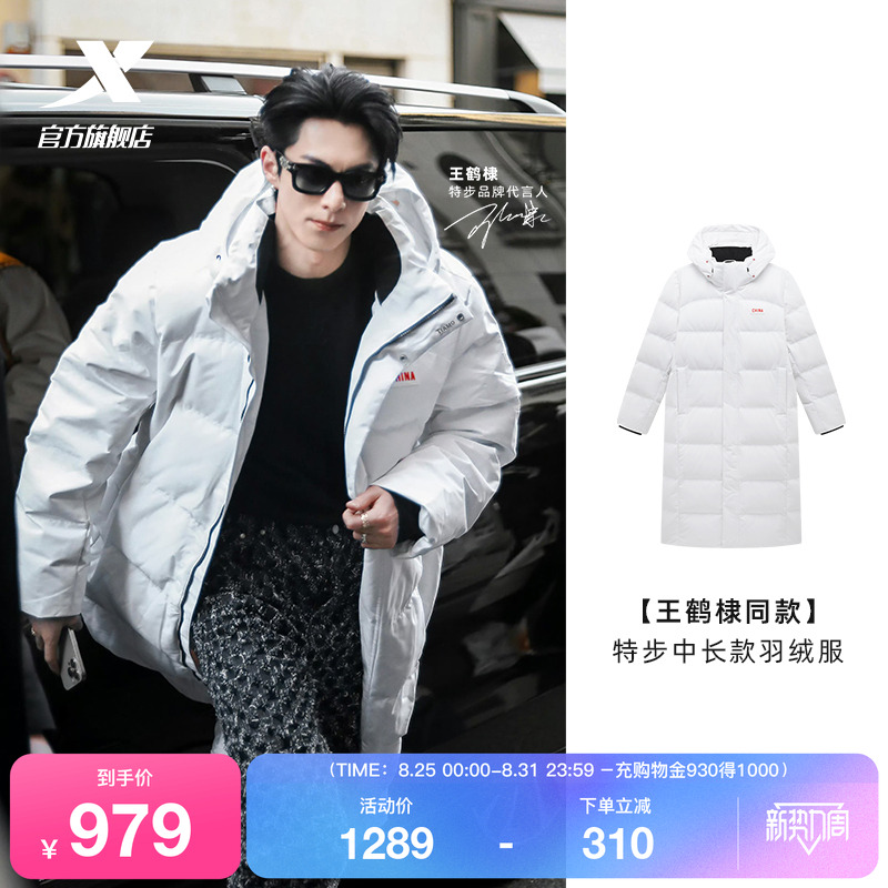 [Wang Hedi в том же стиле] мужской зимний пуховик средней длины XTEP, новый стиль, плюс толстая теплая бархатная куртка