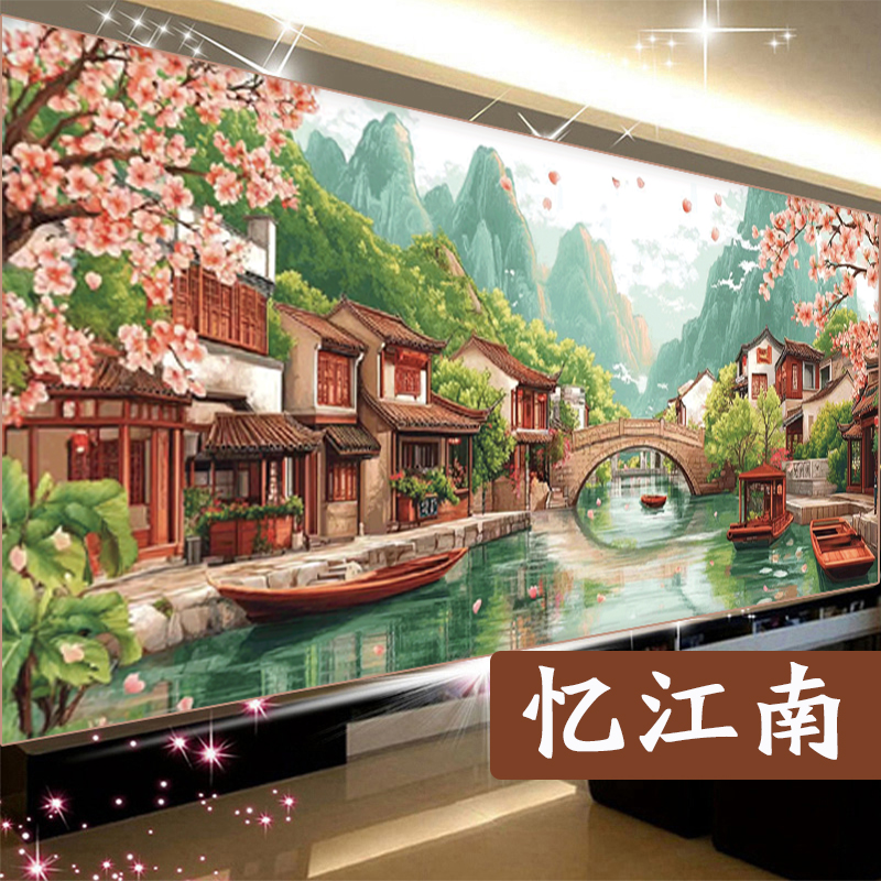 Вышивка крестиком 2025, новый стиль, вышивка нитками, гостиная, крупномасштабная, высококлассная, высококлассное ощущение пейзажа, пьяная, Цзяннань, самостоятельная вышивка, новый китайский стиль