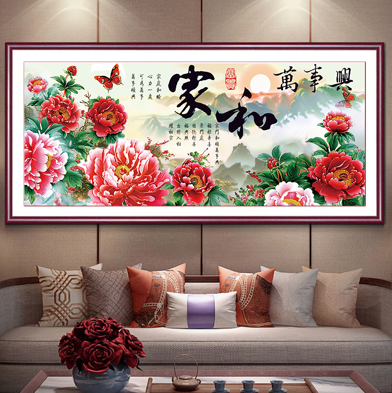 Купить KS большой шестифутовый пейзаж с пионами, вышивка крестиком, 2025 новая вышивка нитками, гостиная, простая современная вышивка, декоративная живопись на таобао