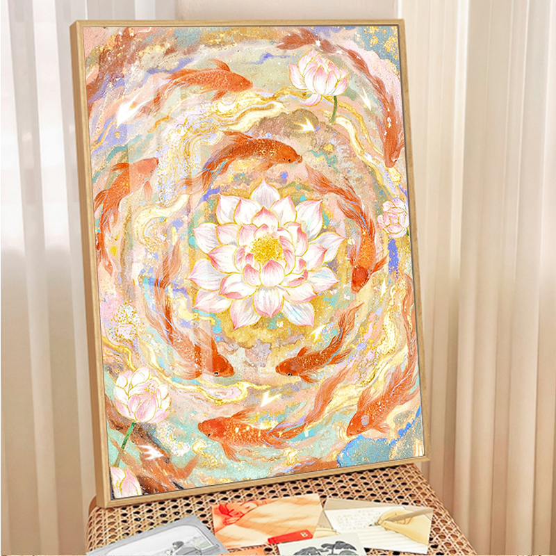 Новый тип вышивки крестиком нитками 2025 новый стиль Цзяхэ Ваньшисин пейзаж с лосем простая современная картина с девятью рыбами