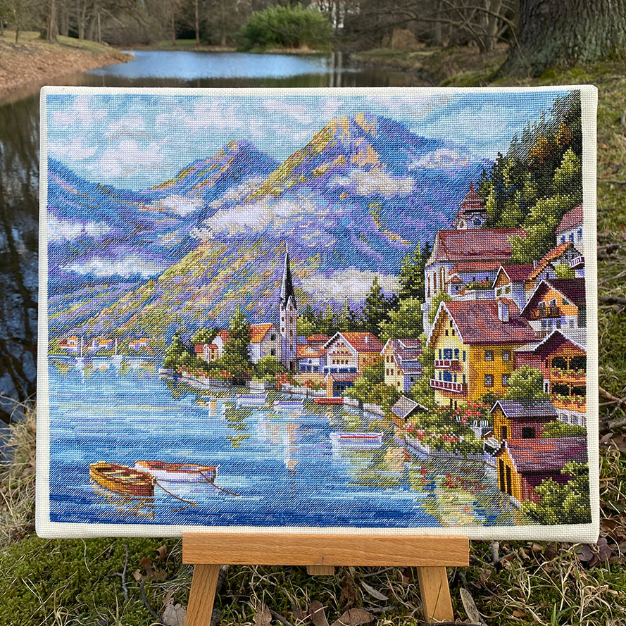 Купить Набор для вышивания крестиком нитками Cool breeze DMC гостиная новый пейзаж FJ2778 Альпийская деревня 14-каратная печать на таобао