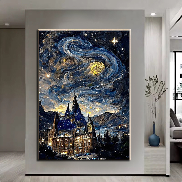 Хогвартс HD 5D Ван Гог звездное небо алмазная живопись ручной работы diy полный бриллиант в рамке точечная алмазная вышивка крестиком самоклеящаяся