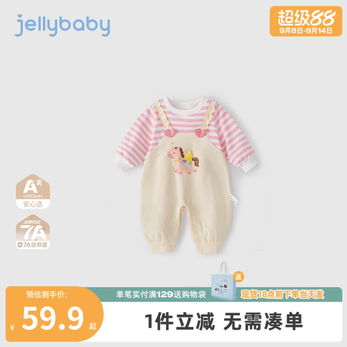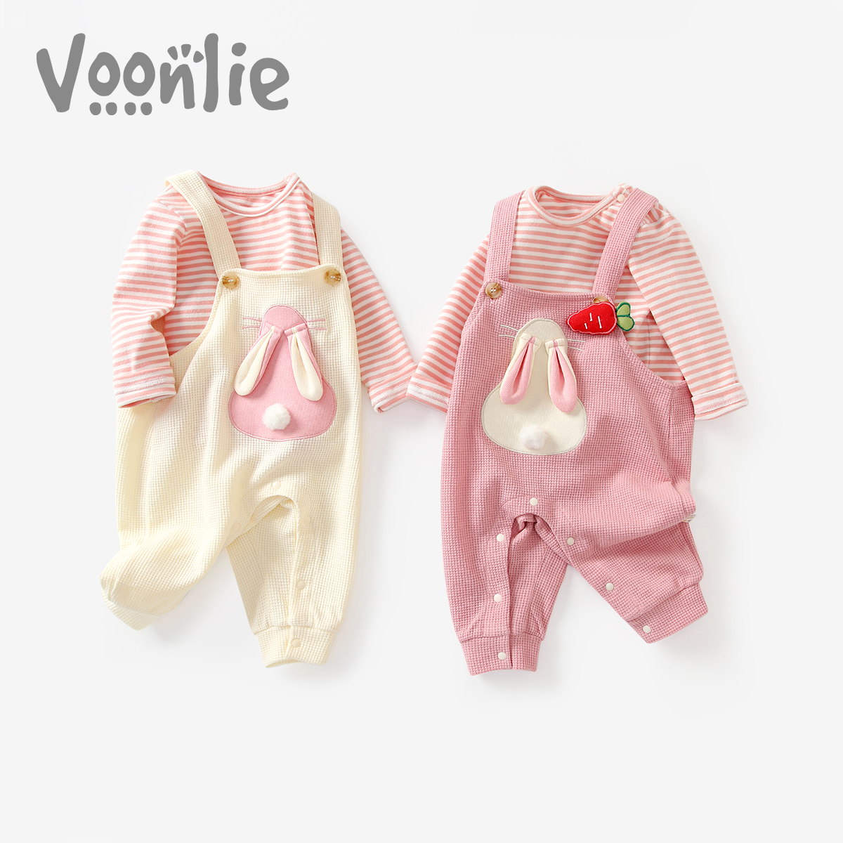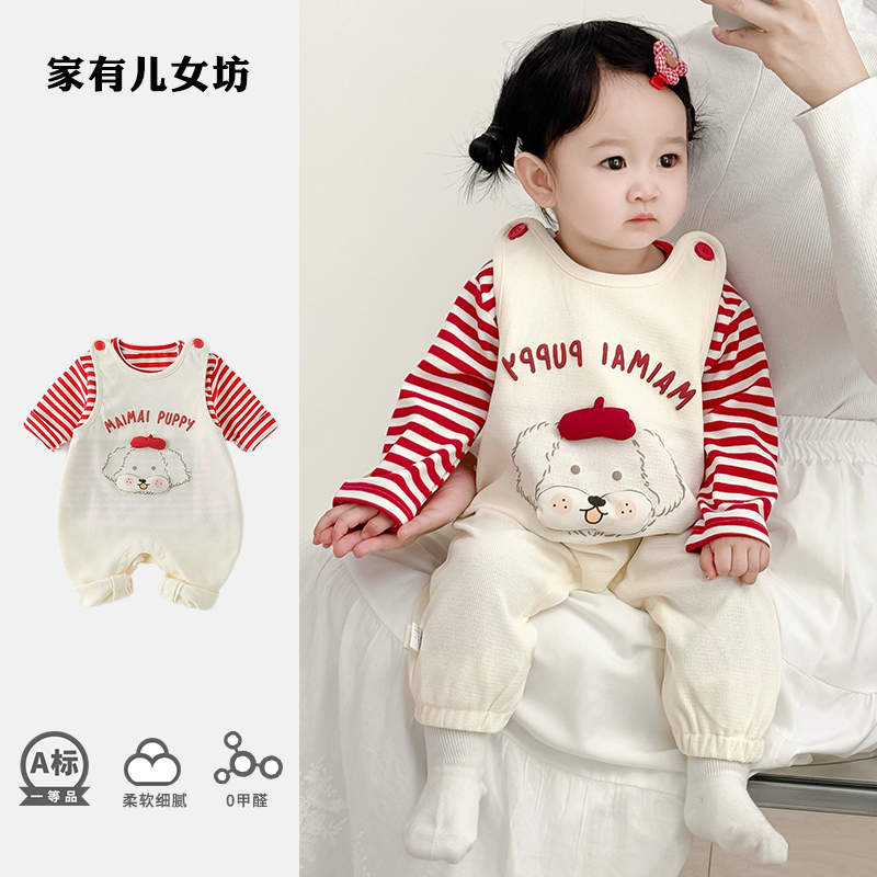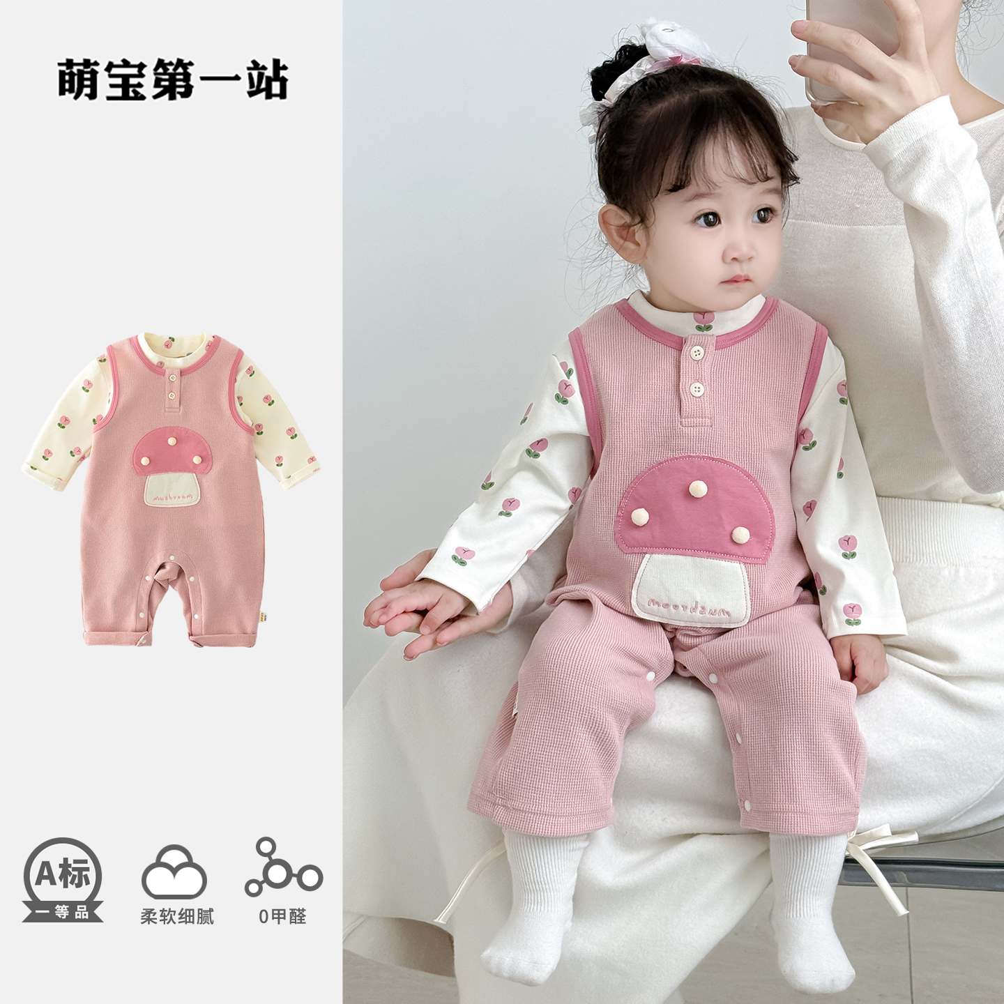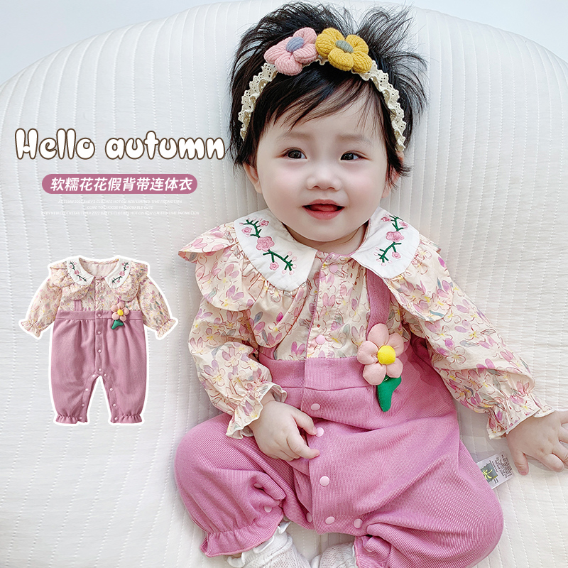 Купить [7A антибактериальный] Детский цельный комбинезон для маленьких девочек, осенний поддельный комбинезон из двух частей, осенний милый комбинезон для новорожденных на таобао