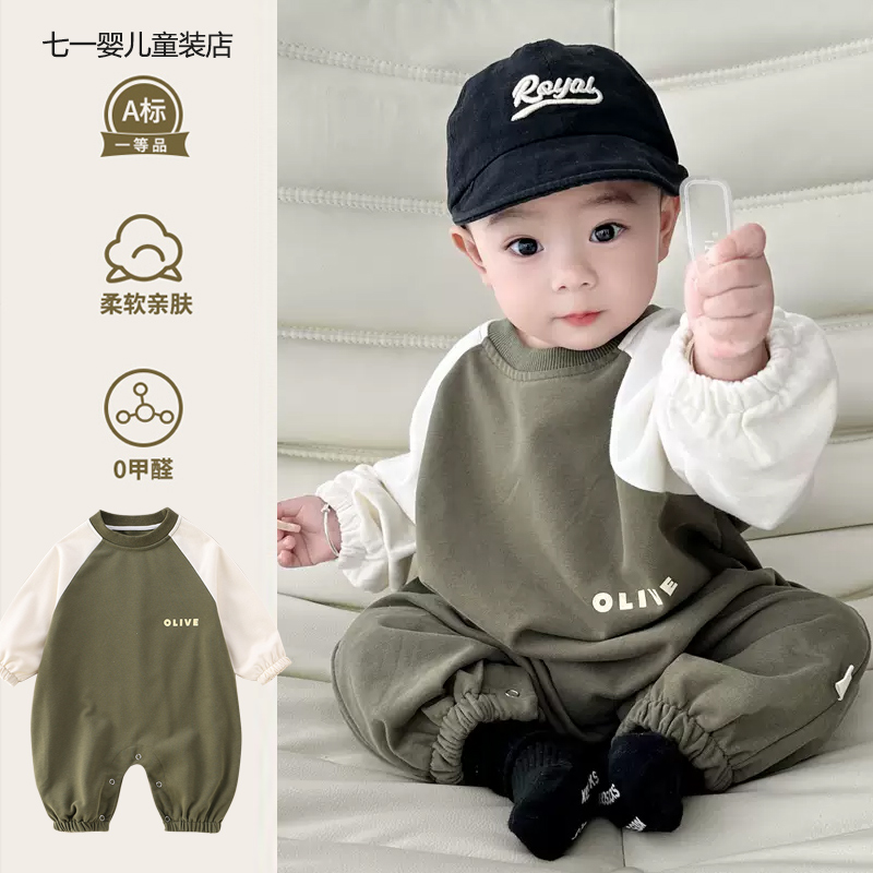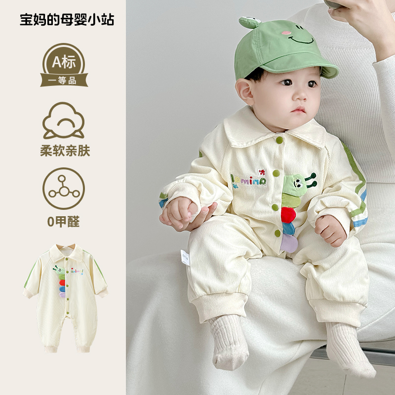 Купить Детская одежда осень ins wind детский осенний комбинезон four seasons из чистого хлопка для новорожденных, цельный весенне-осенний комбинезон на таобао