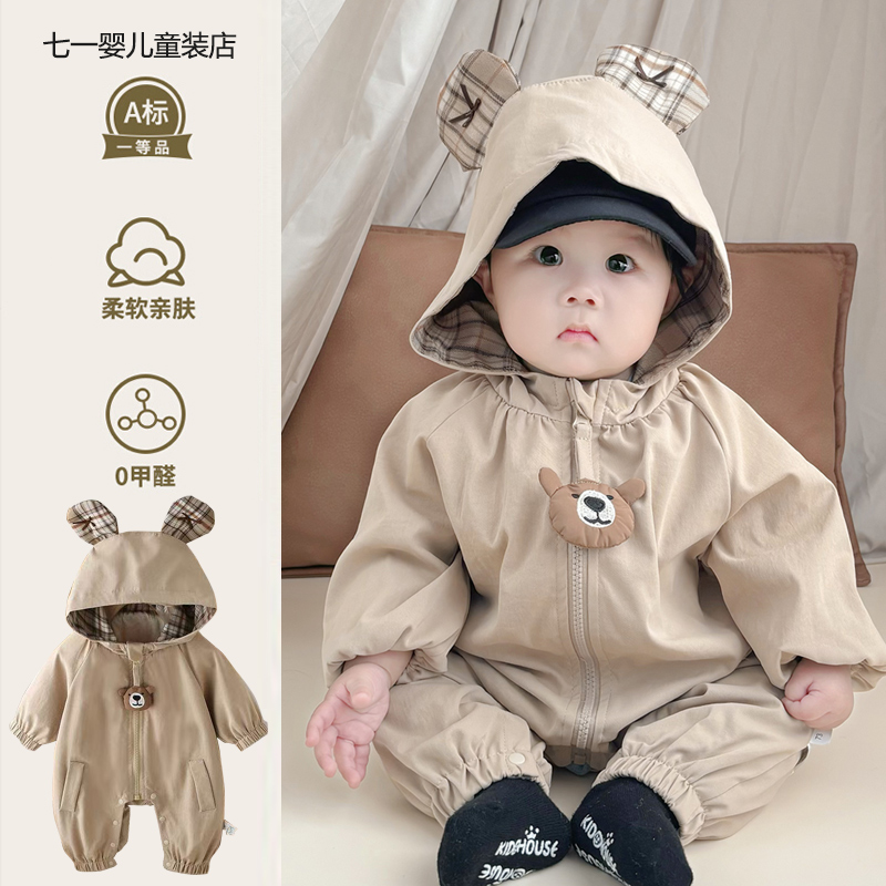 Купить Супер милая детская одежда ранней осени, однослойная одежда для прогулок, весенне-осенняя корейская версия комбинезона, осенний комбинезон для мальчиков и девочек, цельный на таобао